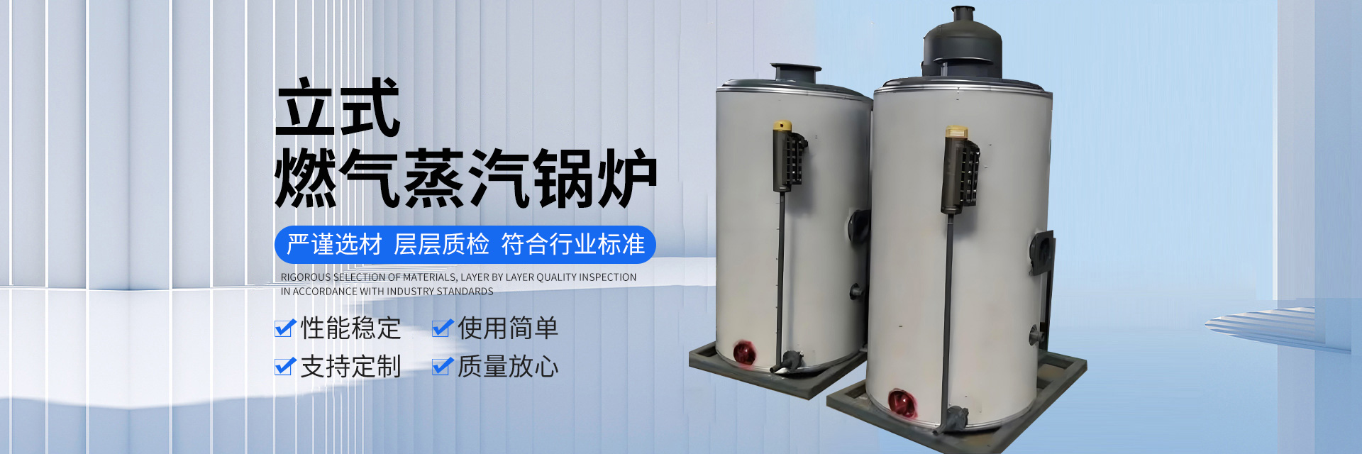 產品有燃氣蒸汽發(fā)生器、生物質蒸汽發(fā)生器、電加熱蒸汽發(fā)生器、熱風爐、燃油蒸汽發(fā)生器,鍋爐輔機,模溫機,浴室專用熱水鍋爐,養(yǎng)殖鍋爐等。產品豐富多樣化,廣泛用于服裝紡織行業(yè)、食品加工行業(yè)、包裝機械、電鍍化工、橋梁鐵路養(yǎng)護、木板竹制品加工、賓館酒店。產品遠銷國內外市場,深受廣大用戶的歡迎。